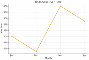 Line Chart (Units Sold): Reveals the February dip (450 units) and March spike (600 units).